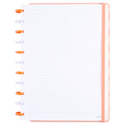 Os Cadernos Diskô são totalmente reposicionáveis: permitem adicionar, remover e reorganizar as folhas com liberdade total. Seu sistema inovador de encadernação utiliza discos para prender as páginas, unindo praticidade, estilo e funcionalidade em um só produto.
